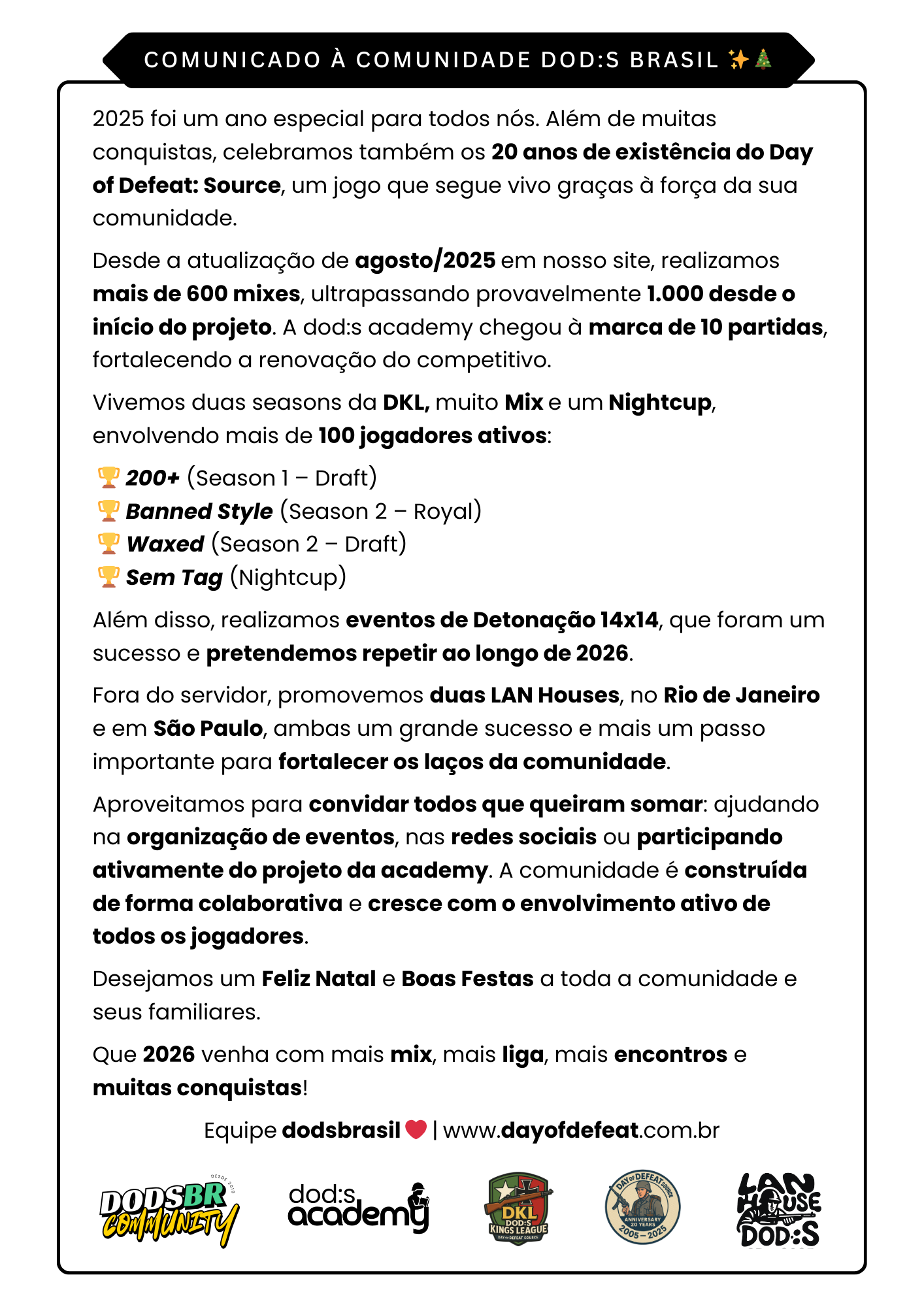 Boas Festas, Comunidade DoD:S Brasil! ✨🎄
